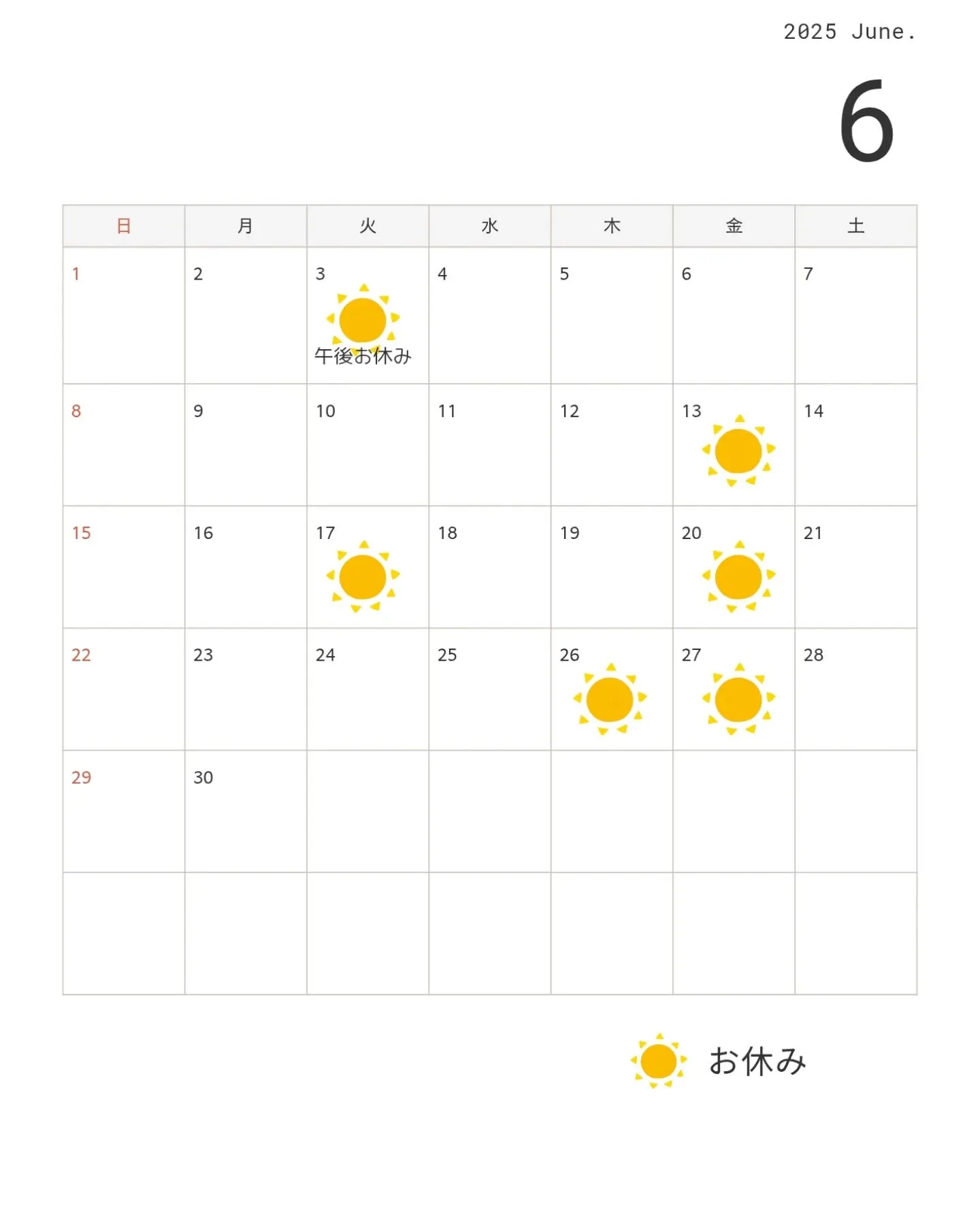 6月のお休み🐌
