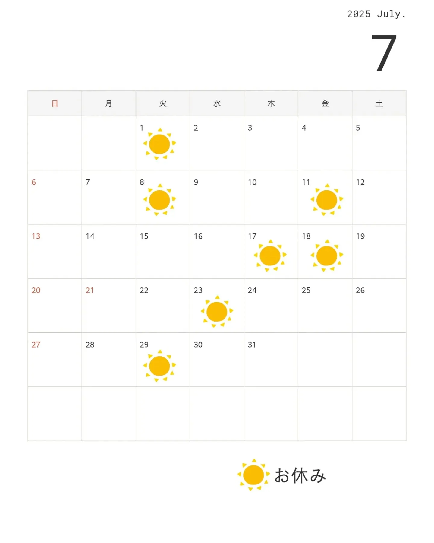7月のお休み🎋